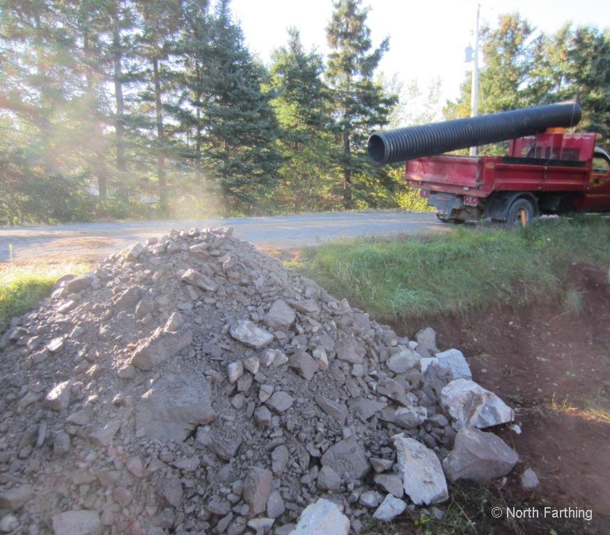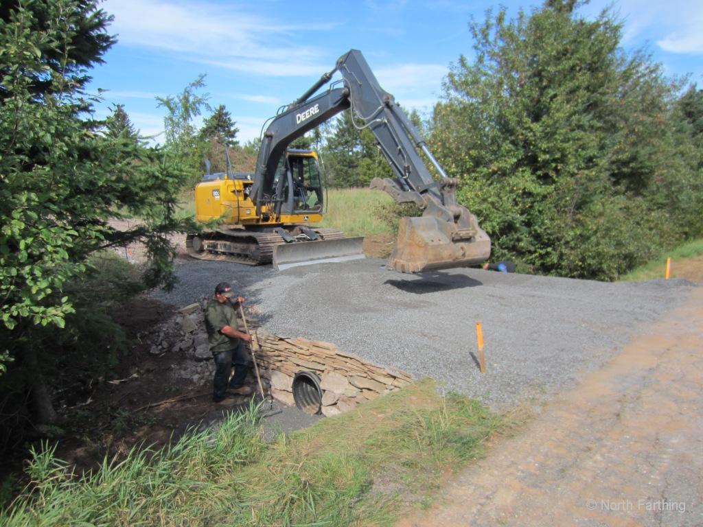 The first step to building on the farm was getting a driveway approved and installed. These shots are from the whirlwind day with the big machines, start to finish in about six hours. Many thanks Ashley, Richard, & crew for a great job. September 2013